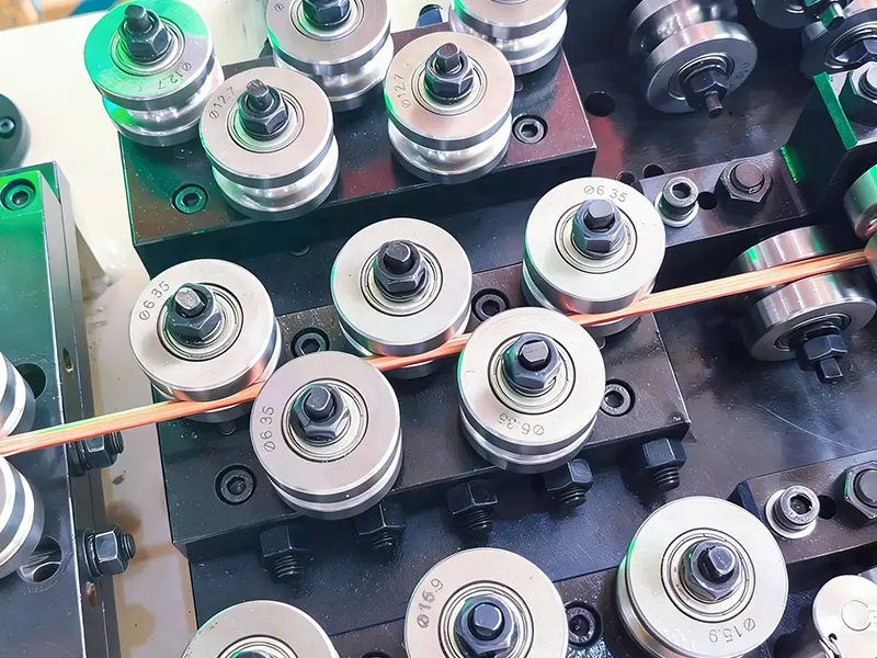 GRM Rolling Mill falefaigaluega ofo atu maualuga-saʻo electromagnetic uaea taʻavale mill, fuafuaina mo le saʻo fausia o uaea maneta rectangular. O meafaigaluega e faʻaogaina ai le faʻaogaina poʻo le malulu o le taʻavale, ma faʻamautinoa o le uaea o loʻo i ai foliga saʻo tulimanu e ala i le tele o taʻavale pasi, ma e mafai ona faʻafefe i le enameled, pepa poʻo le afifi polyester. O le masini taʻavale o loʻo i ai le mafiafia maualuga ma le lautele o le faʻatonutonuina o le faiga e faʻamautinoa ai le sili ona lelei o le coil density ma le faʻaogaina o le lelei, ma e faʻaaogaina lautele i le gaosiga o masini eletise maualuga e pei o afi, transformers, ma inverters.