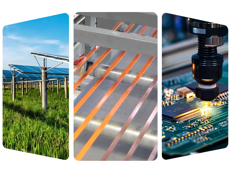E pei o le alamanuia-taʻitaʻia maualuga-saosaoa, maualuga-saʻo busbar tuufaatasia masini, e mafai e lenei meafaigaluega ona iloa le faagasologa atoa tuufaatasia gaosiga mai ¢ 3mm kopa mea mata i oloa maeʻa (lautele 3 ~ 8mm, mafiafia 0.2 ~ 0.45mm), ma le saoasaoa faagaoioia maualuga o le 250m / min, fetaui lelei ma manaoga stringent o le gaosiga maualuga maualuga o le gaosiga maualuga o le photovolta.